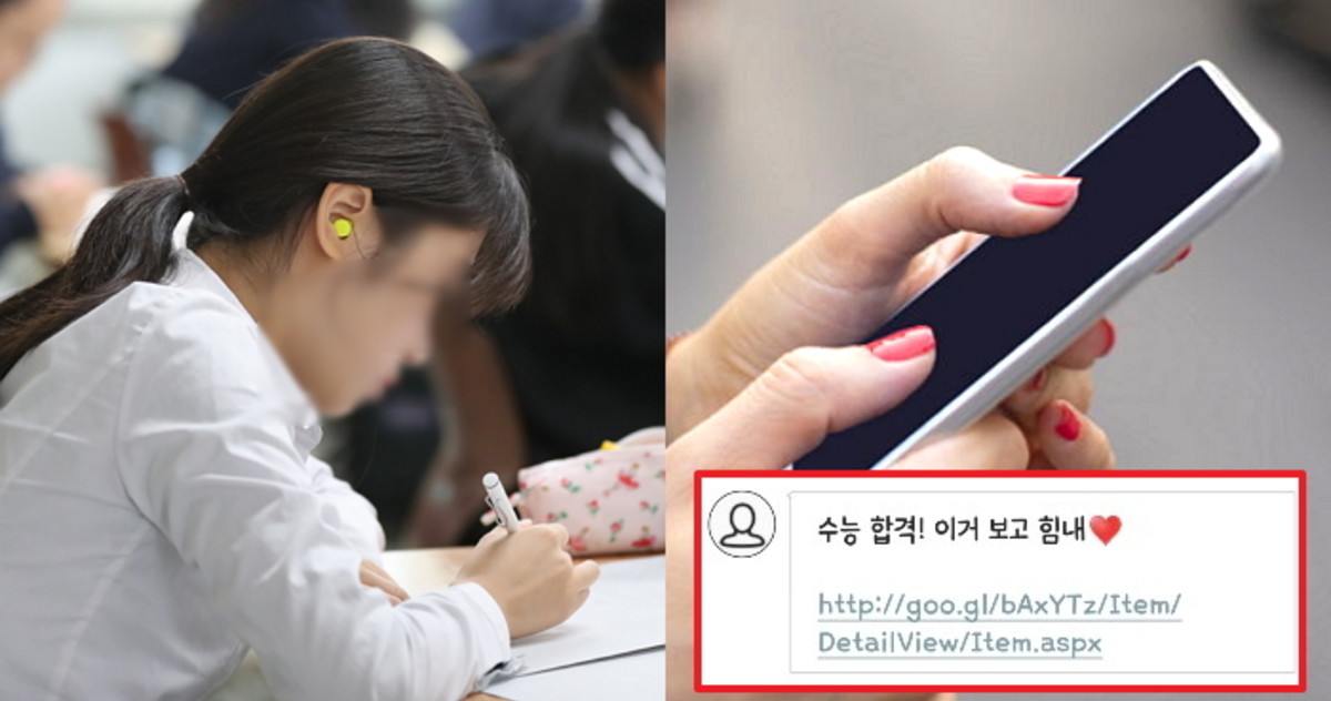 경찰에 따르면 "수능 합격!", 꼭 되길 바랄게", "이거 보고 힘내!" 등 응원 문구와 함께 인터넷 주소 링크가 첨부된 메시지가 발송될 수 있다.
