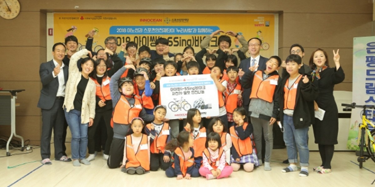 지난 7일 이노션은 스포츠안전재단과 함께 은평구 소재 '누리사랑' 지역아동복지센터에서 자전거 및 헬멧 전달식을 가졌다.
