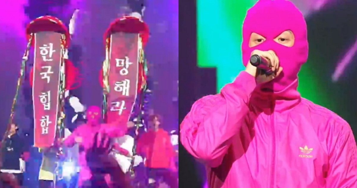 마미손은 이날도 트레이드 마크인 핑크 복면을 쓰고 등장했다.