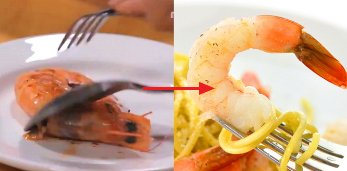 수저와 포크 이 두 가지로 새우 껍질을 쉽게 깔 수 있는 방법이 소개됐다.