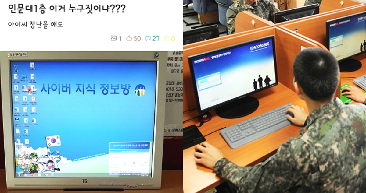 같은 대학교의 다른 건물에서도 학교 컴퓨터 배경화면이 사지방으로 바뀐 것이다.