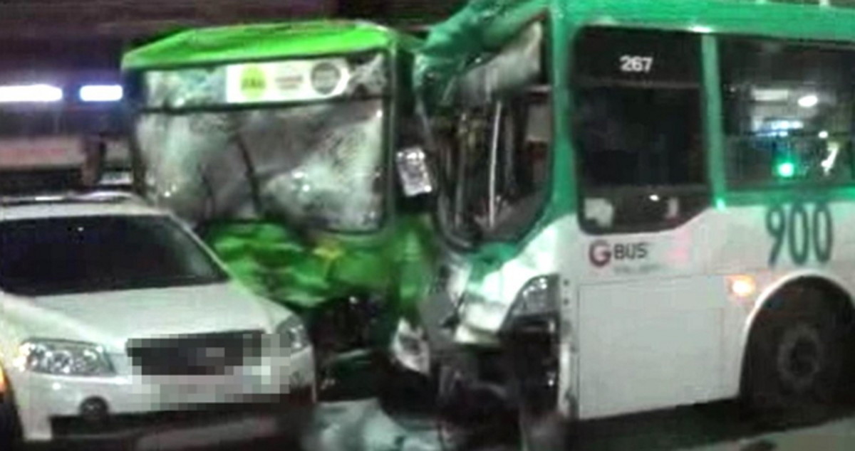 소방 당국에 따르면 시흥사거리에서 독산사거리 쪽으로 운행하던 900번 버스가 직진 신호를 위반해 5623번 버스를 들이받았다.