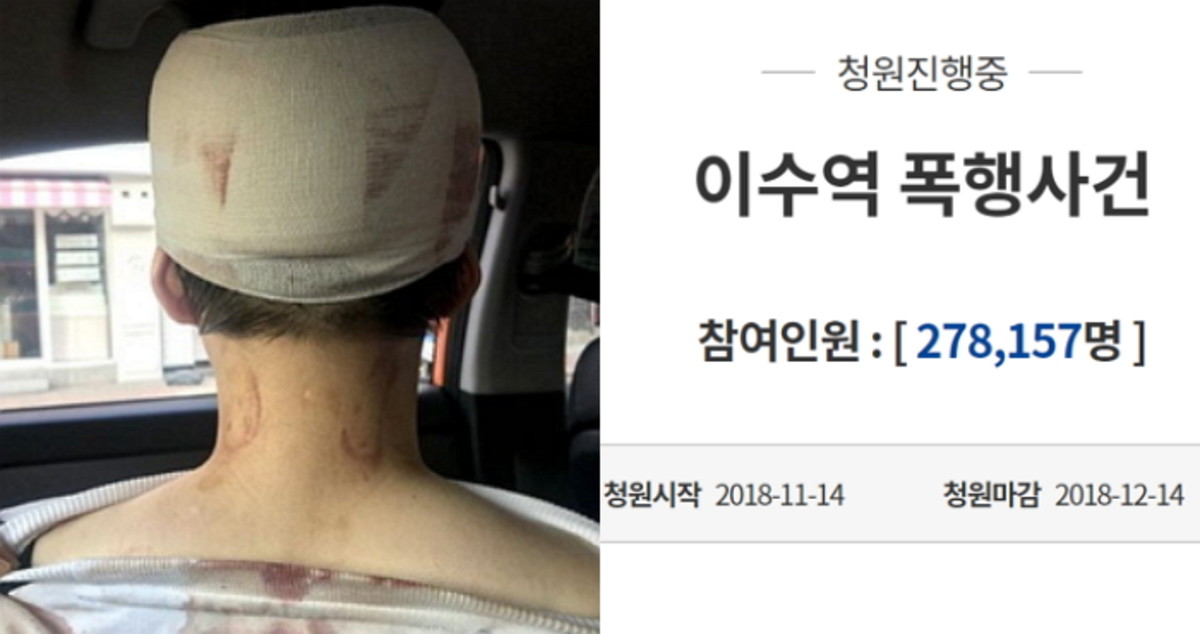 지난 14일 청와대 홈페이지 '국민청원 및 제안' 게시판에는 "이수역 폭행 사건"이라는 제목의 청원 글이 올라왔다.