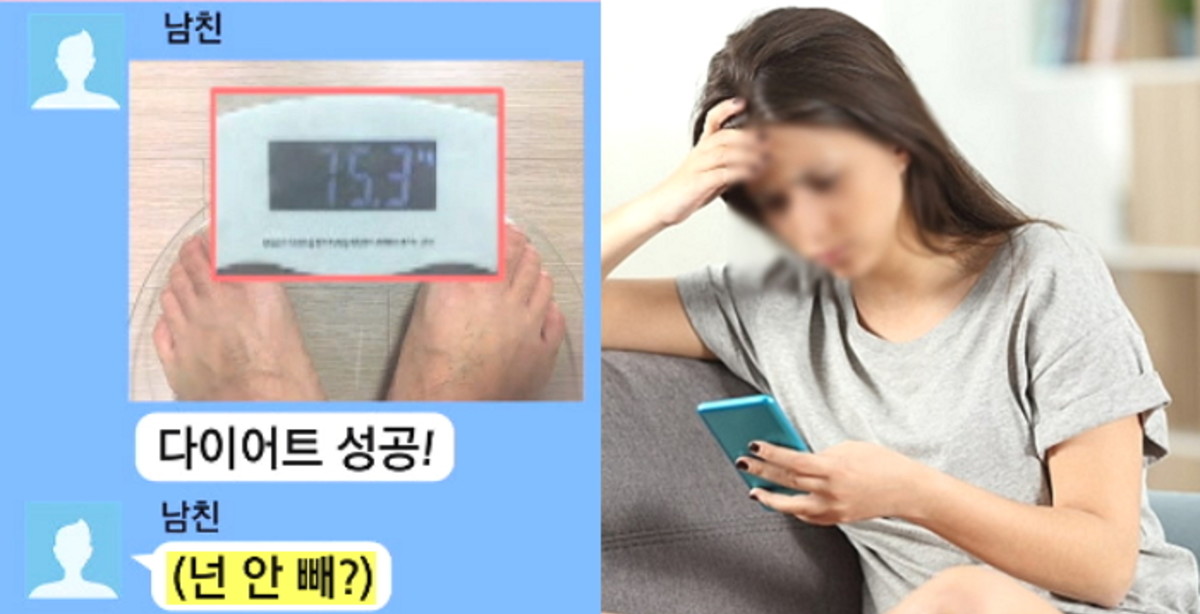 남자친구는 체중계 인증샷과 함께 "다이어트 성공"이라며 고민녀에게 문자를 보냈다.
