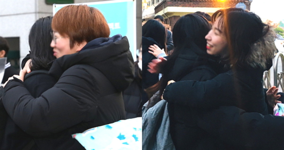 긴장한 마음을 숨기고 있다가 저 멀리 보이는 선생님을 보고 울음이 터져버린 학생도 있다. 선생님은 그런 제자를 보며 눈시울이 불거지며 감정을 함께 나눴다.