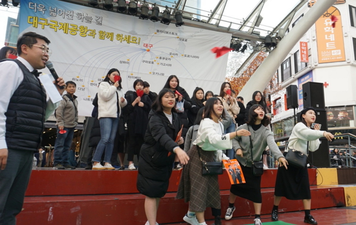 [인사이트] 김지현 기자 = 티웨이항공이 수험생을 비롯해 올 한 해 고생한 모두를 위해 대구 동성로에서 특별한 거리 공연을 선보였다.