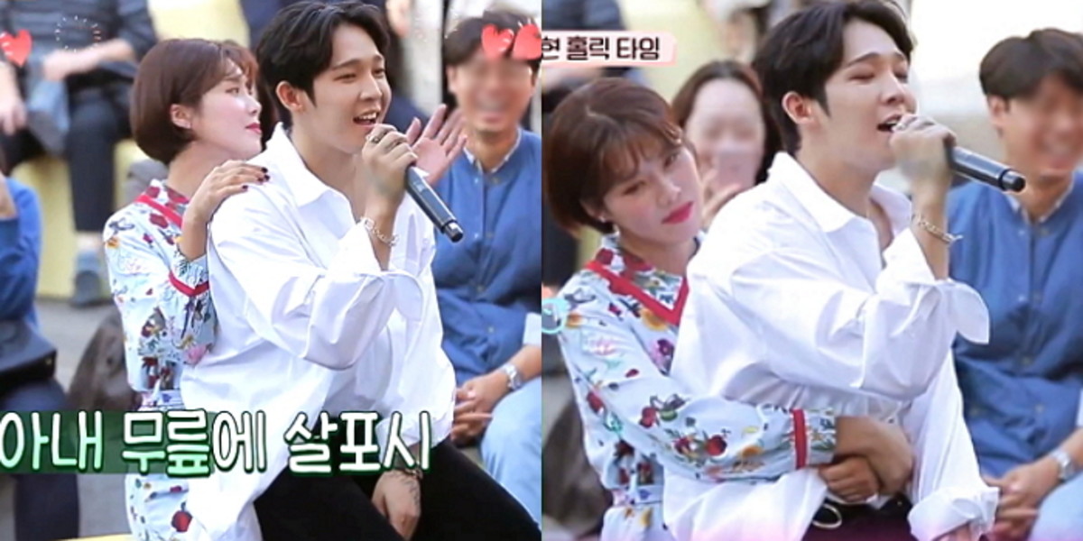 그는 장도연을 앉히더니 그녀의 무릎에 앉아 노래를 이어갔다.
