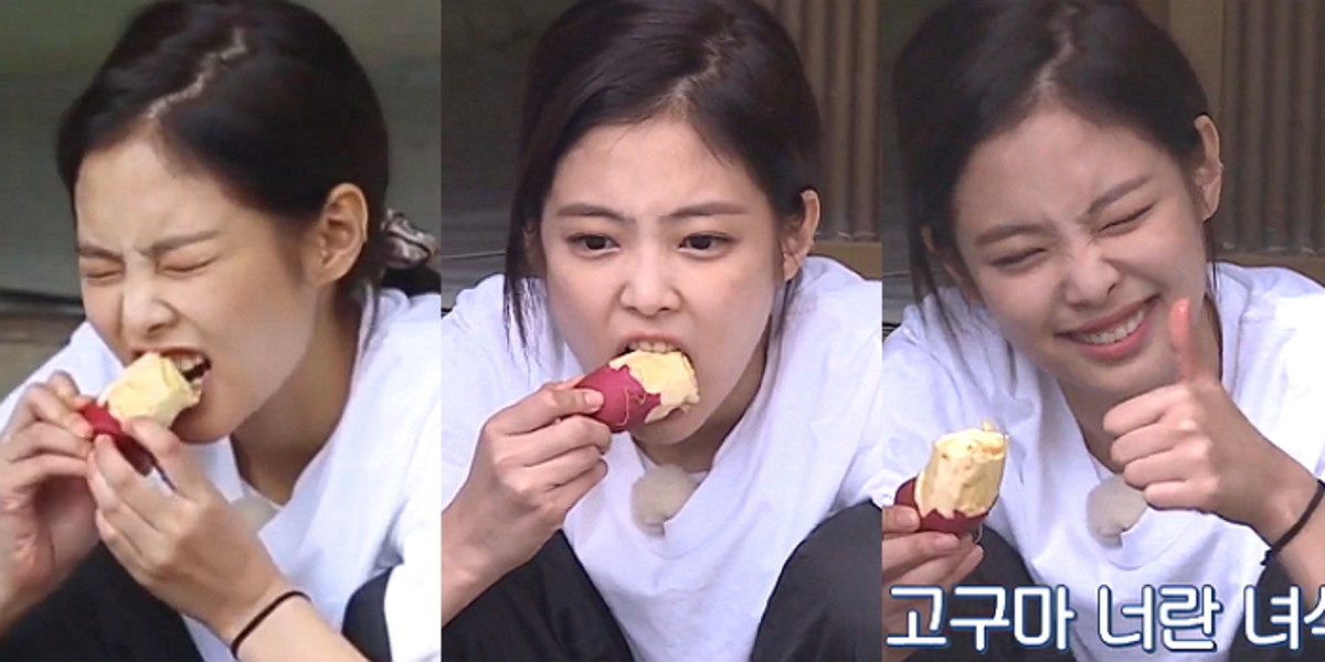 제니는 고구마 한 입을 먹어도 다양한 표정을 연출하면서 귀엽고 사랑스러운 매력을 발산했다.