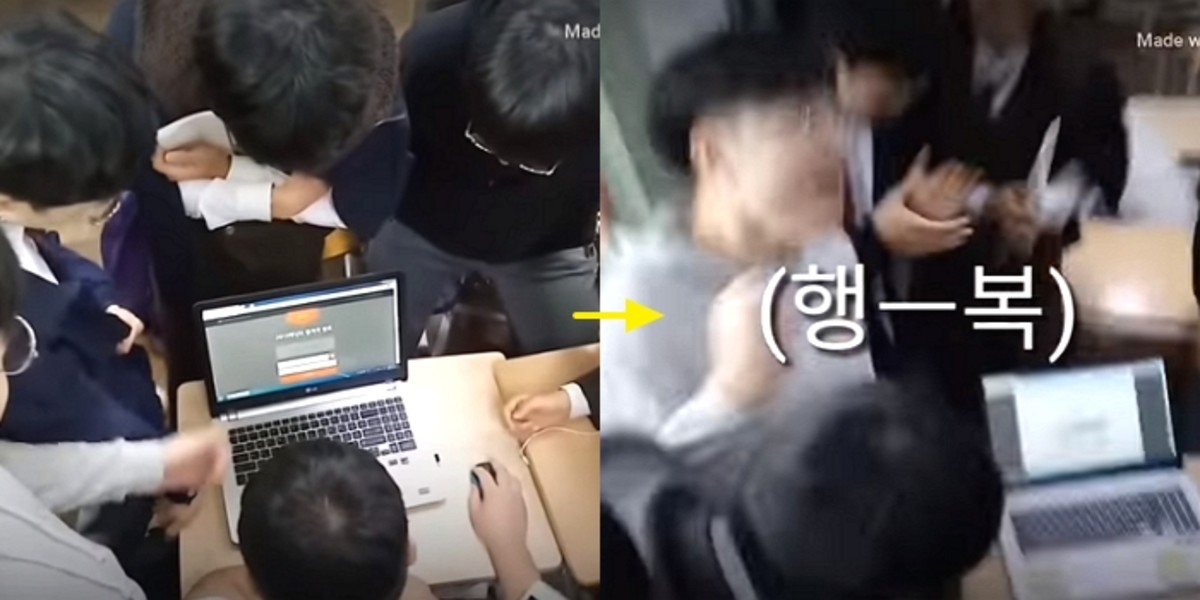 영상 속에는 학교에서 반 친구들과 함께 대학교 수시 합격자 발표 조회를 하는 울산 학성고등학교 학생들의 모습이 담겼다.
