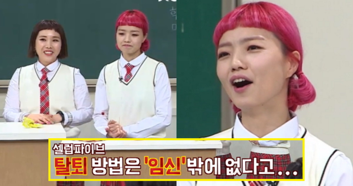 이어 "탈퇴를 하려면 임신밖에 없다는 말을 (멤버들로부터) 들었다"면서 "나는 지금 가능하거든. 지금 당장이라도"라고 '19금 드립 장인' 다운 면모를 보여 출연자들을 당황케 했다.