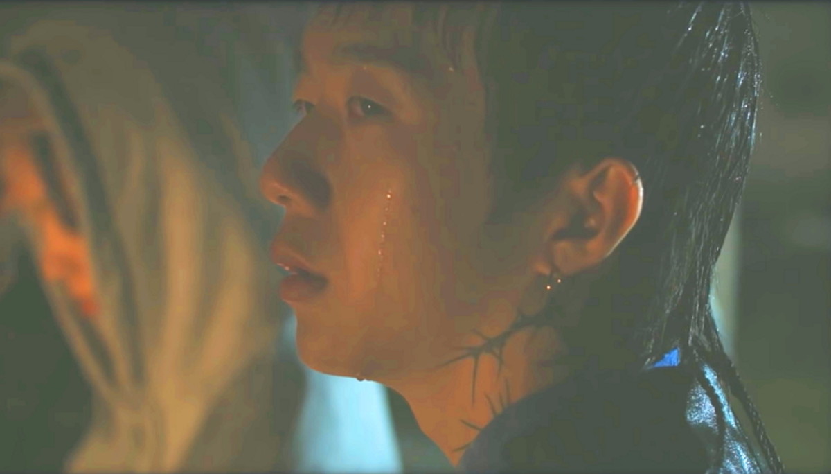 비에 맞고 있는 그의 모습은 심각하고 우울해 보인다. 우원재 얼굴에 쏟아진 빗물이 마치 그의 눈물처럼 보인다.