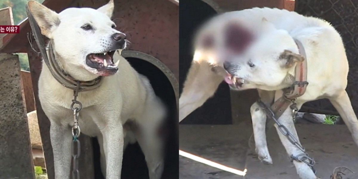 제작진이 도착한 곳에는 몸통과 다리에 새빨간 상처가 커다랗게 나 있는 백구 '백상이'가 있었다.