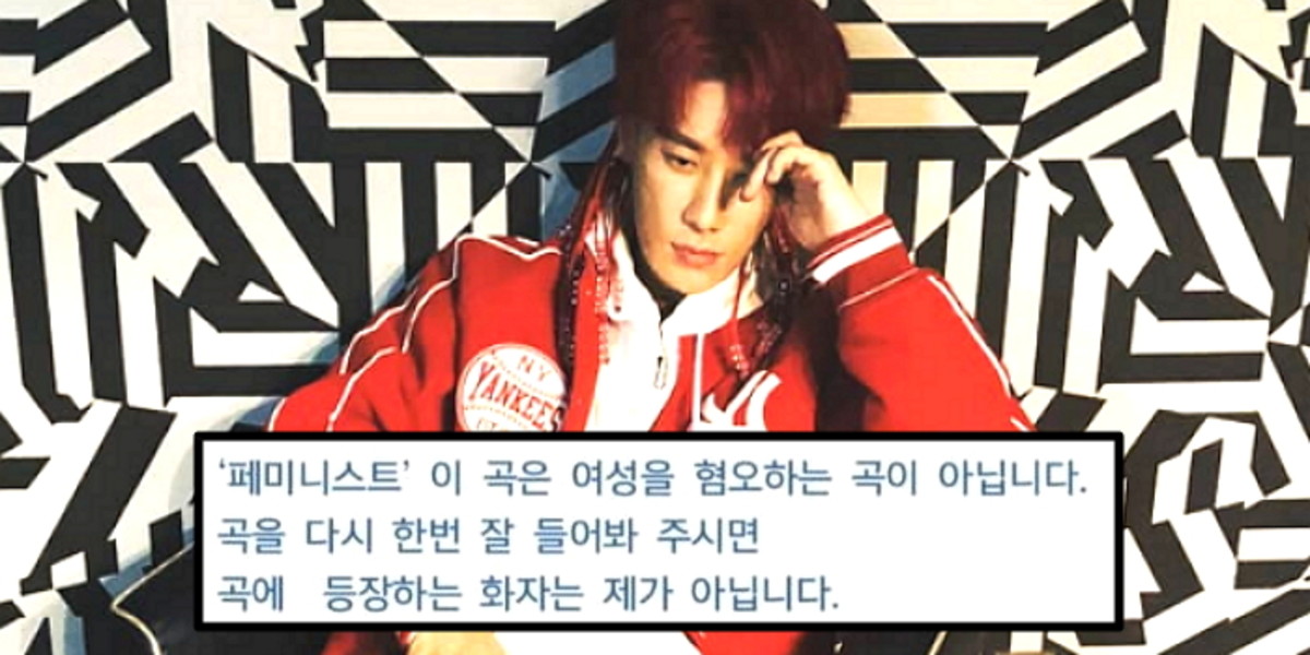 그는 "곡에 등장하는 화자는 제가 아니다"라며 "곡의 본래 의도는 노래 속 화자처럼 겉은 페미니스트지만 속은 위선적인 사람을 비판하는 내용"이라고 설명했다.
