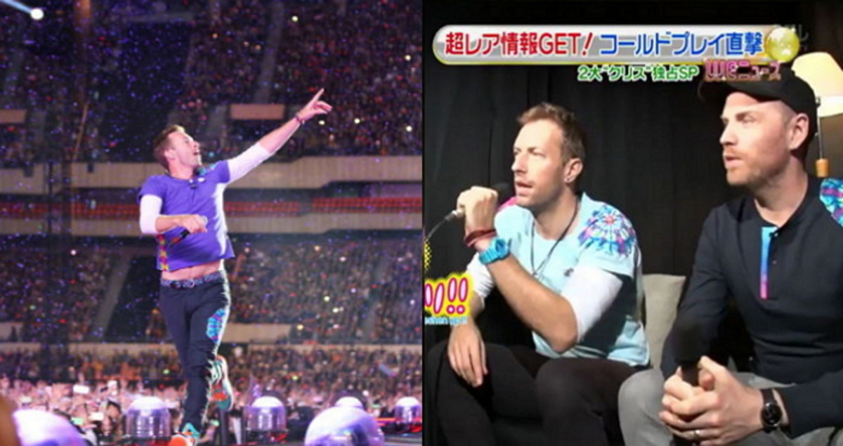 지난해 5월 1일(현지 시간) 콜드플레이의 메인보컬 크리스 마틴(Chris Martin)과 기타리스트 존 버클랜드(Jonny Buckland)는 일본 니혼TV '수키리(Sukkiri)'에 출연했다.