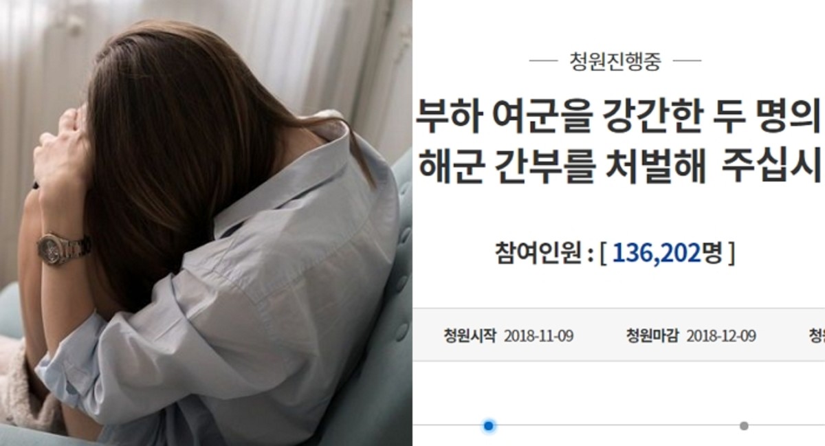 한편 지난 9일 청와대 국민 청원 게시판에는 '부하 여군을 강간한 두 명의 해군 간부를 처벌해주십시오'라는 제목으로 청원이 올라와 하루 만에 5만명 이상이 동의를 표했다.