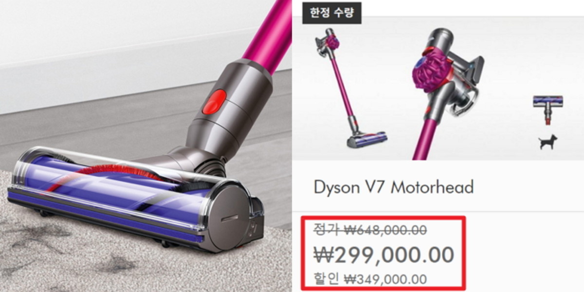 특히 다이슨의 대표 제품 가운데 하나인 'V7 Motorhead'를 무려 약 55% 할인된 가격에 소비자들을 만난다.