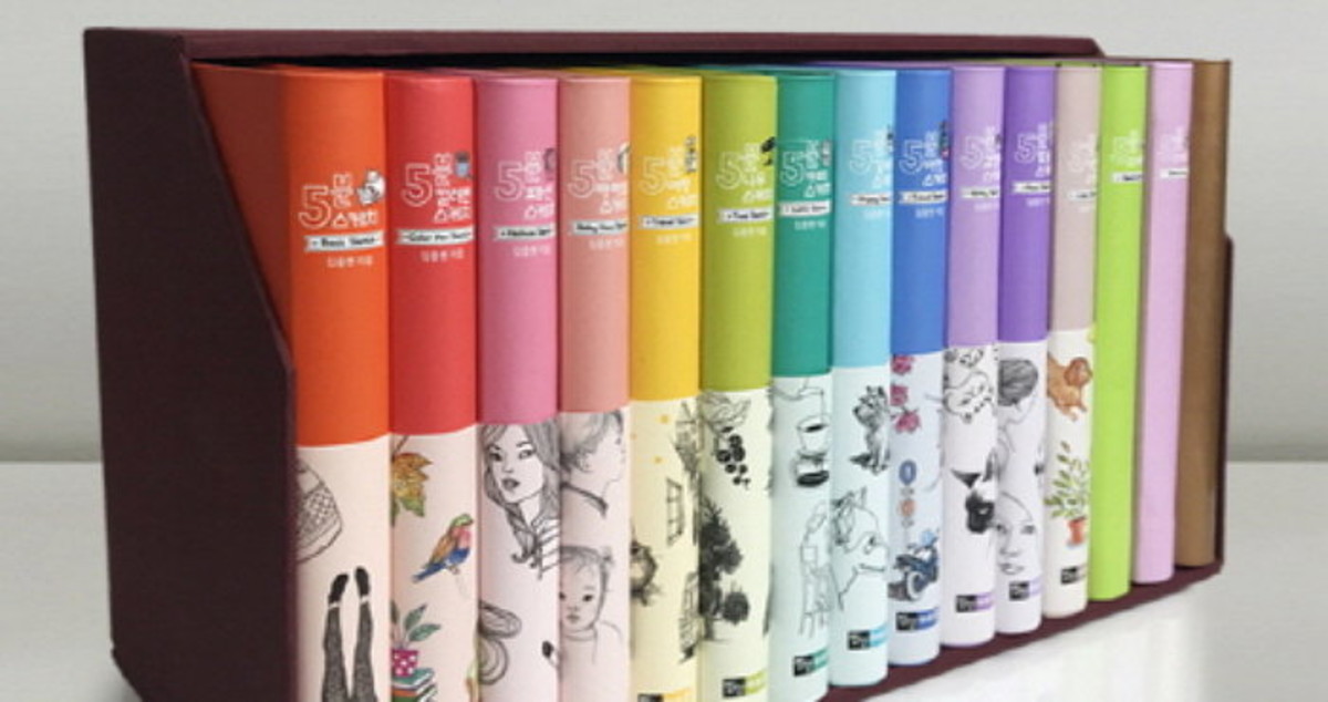 이번 컬렉션에서는 12권의 '5분 스케치'시리즈 책을 모두 담아 책의 주제별로 '카페, 고양이, 여행, 색연필 스케치' 등 원하는 다양한 스케치를 즐길 수 있다.