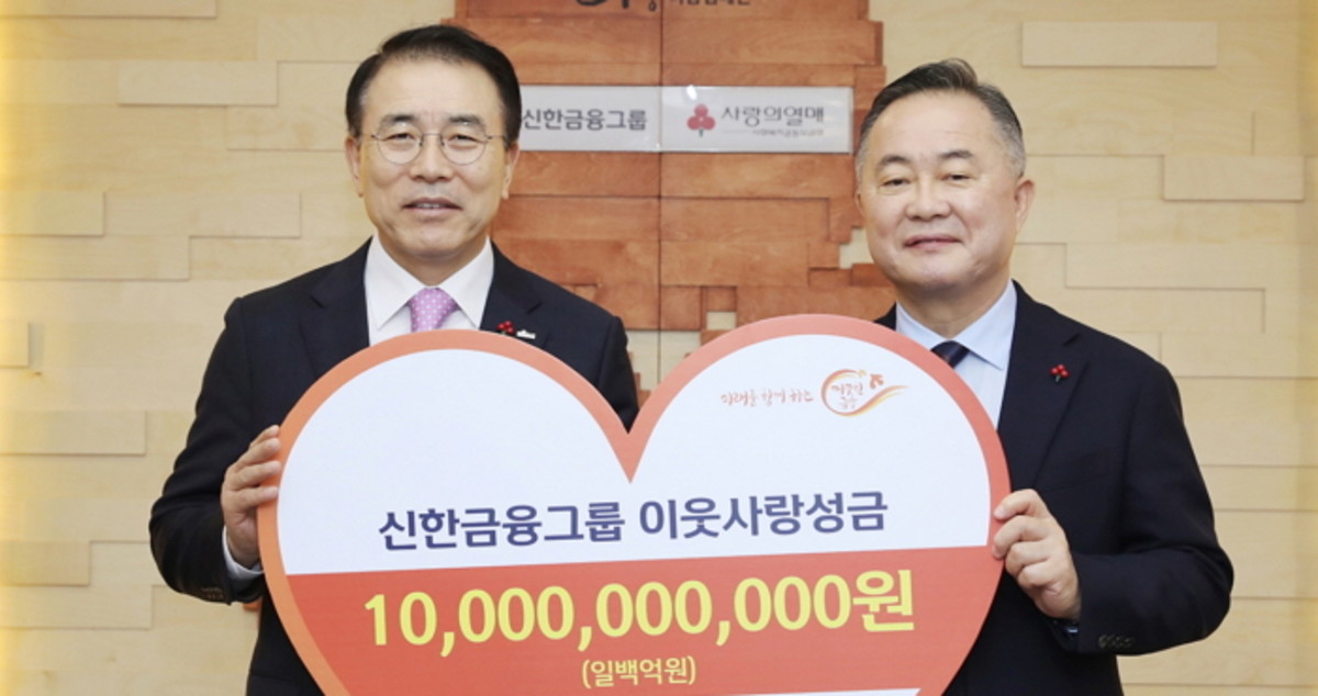 22일 신한금융그룹은 서울시 중구 정동에 위치한 사회복지공동모금회를 방문해 이웃사랑 성금 100억원을 기부했다고 밝혔다.