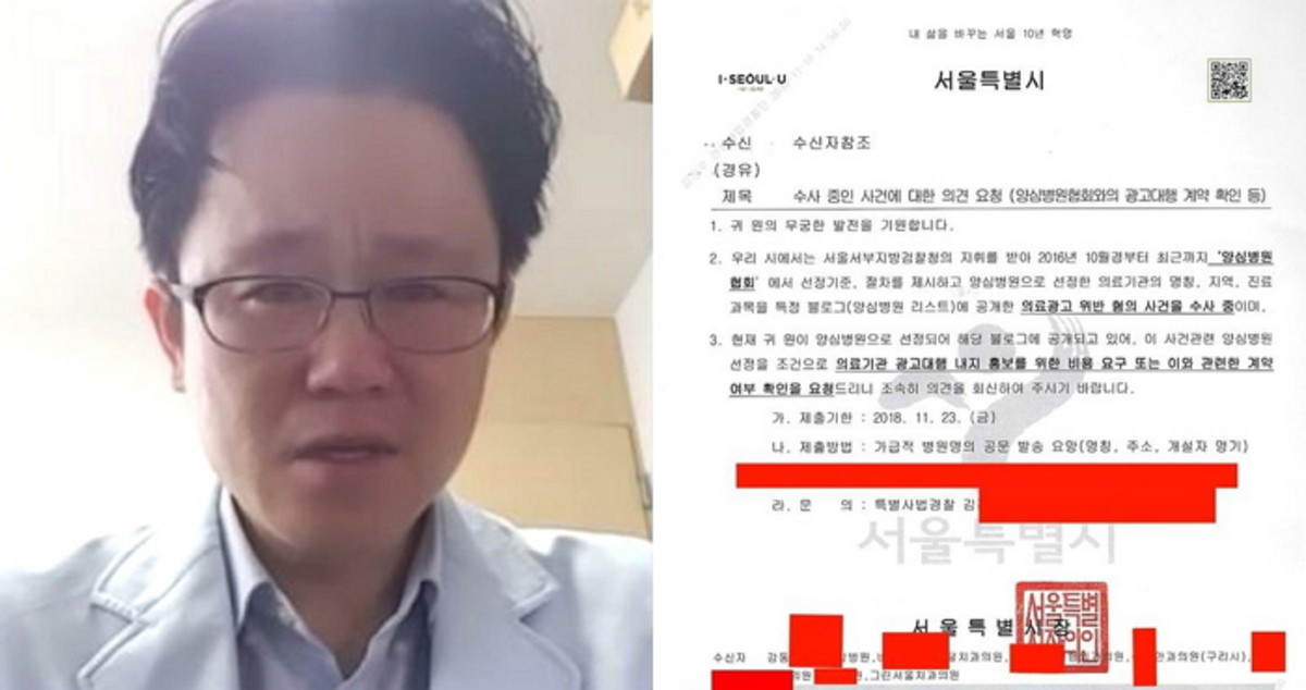 공문을 받은 것 자체가 수치스럽다는 강 원장은 "적어도 이런 공문을 보내려면 제가 홍보를 위해 접촉을 했다거나 계약을 했다는 계약서 등의 전제조건부터 사실인지를 확인하는 게 순서 아니냐"고 지적했다.
