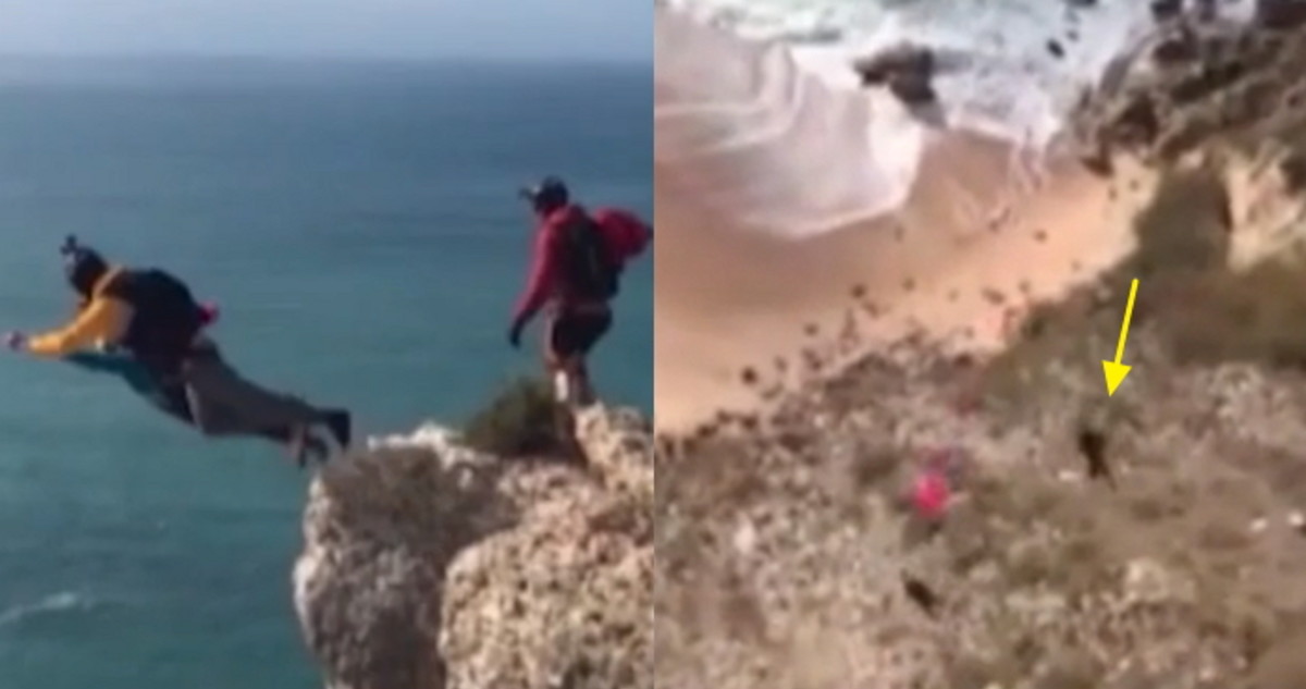 약 95m에 이르는 절벽 앞에 선 남성은 친구와 나란히 아래로 뛰어내렸고, 친구 중 한 명은 이를 영상으로 남기기 위해 촬영을 계속했다.