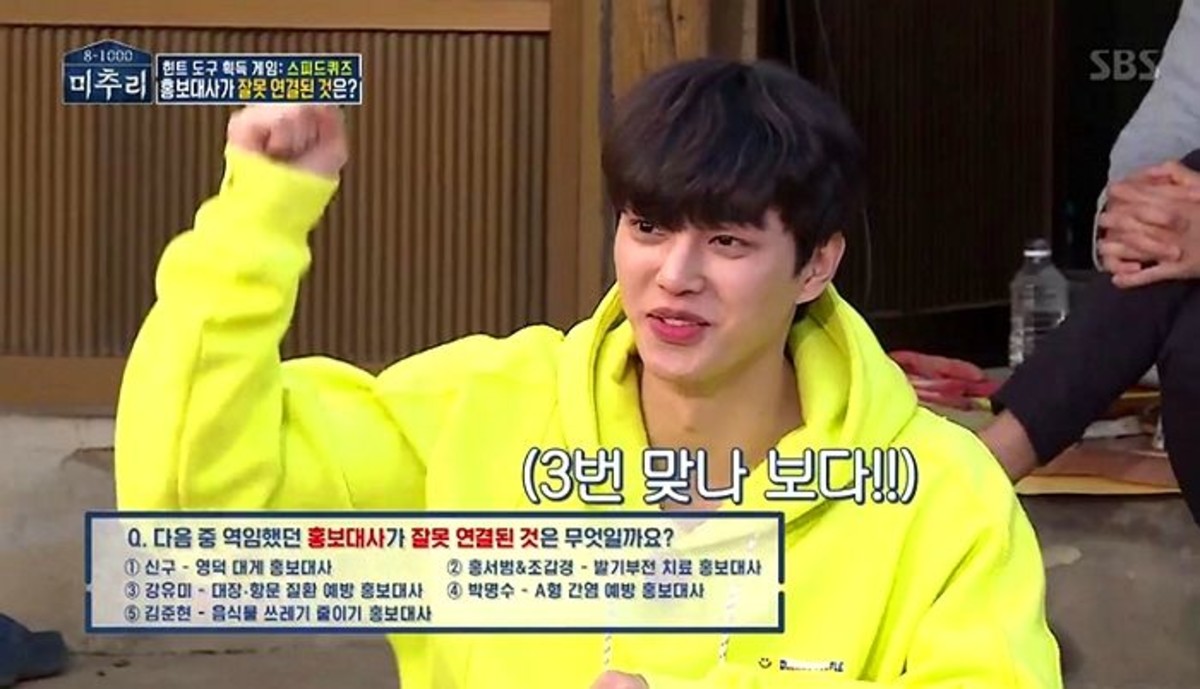 이날 방송분에서 송강은 힌트 도구를 획득하기 위해 진행된 스피드 퀴즈에 골똘히 집중하였음에도 불구하고 오답을 연속으로 말하며 완벽한 비주얼과 180도 다른 허당 매력을 발산해 시선을 끌었다.