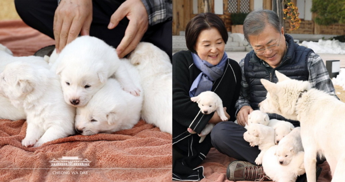 청와대는 "엄마 개와 여섯 새끼 모두 아주 건강하다"고 소식을 전했다.