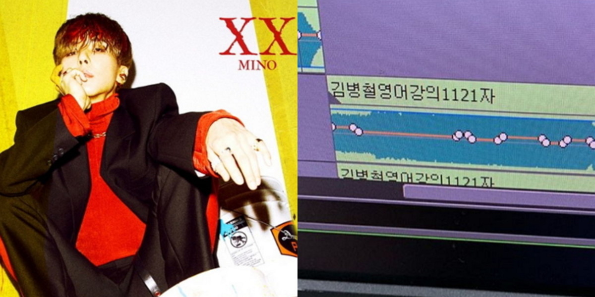 송민호의 카리스마 넘치는 앨범 재킷 사진, 힙합 음악과 영어 강의 음성은 잘 매치가 되지 않는 모습.