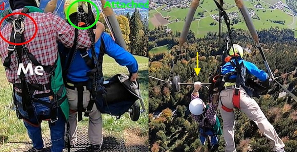 [인사이트] 장경윤 기자 = 자신의 안전 줄을 글라이더에 메지 않은 조종사 때문에 남성은 높은 상공에서 목숨을 건 사투를 벌여야 했다.