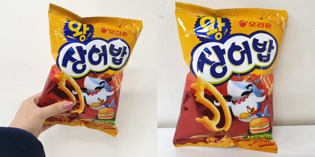 왕상어밥 새우버거맛은 기존 '상어밥'의 맛은 그대로 유지하면서 과자 크기를 3배 가량 키워 씹을 때 상어밥 여러 개를 한 번에 먹는 듯한 느낌을 준다.