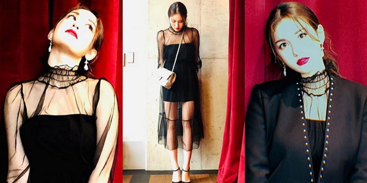 공개된 사진 속에서 전소미는 과감한 검은색 시스루 원피스를 입고 하이힐을 신은 모습.