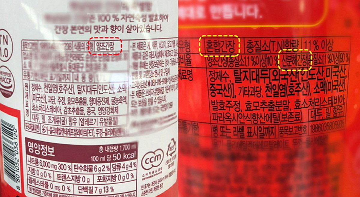 공개된 정보에 따르면 소비자들은 간장을 고를 때 간장 뒷면에 적힌 '식품 유형'이 '한식간장' 또는 '양조간장'인지, '혼합간장'인지만 확인하면 된다.