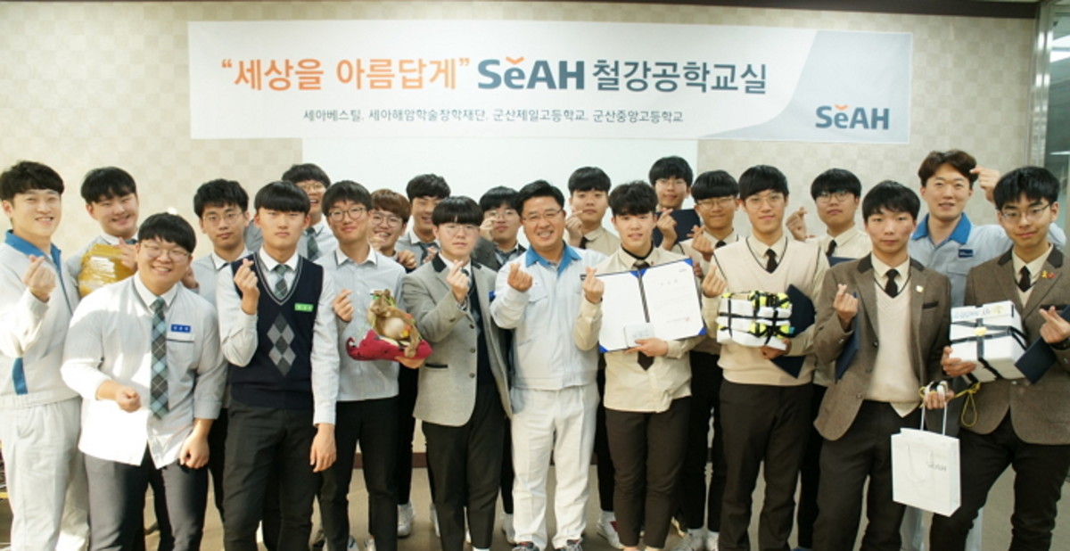 [인사이트] 윤혜경 기자 = 세아베스틸이 교육나눔활동인 '세아 철강공학교실' 고등반 수료식을 가졌다.