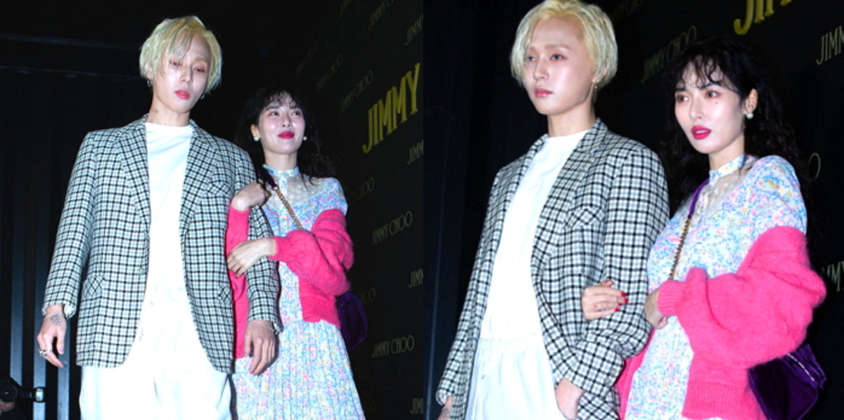 이날 현아, 이던 커플은 서울 강남구 논현동 SJ쿤스트할래에서 열린 액세서리 브랜드 지미추의 행사에서 다정한 한때를 보냈다.