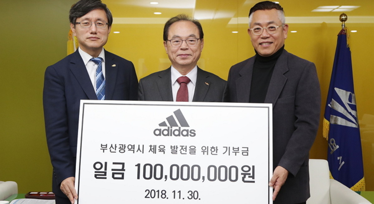 아디다스가 전달한 기부금은 부산시 체육발전을 위해 부산시 체육회 및 부산시 장애인 체육회에 사용될 예정이다.