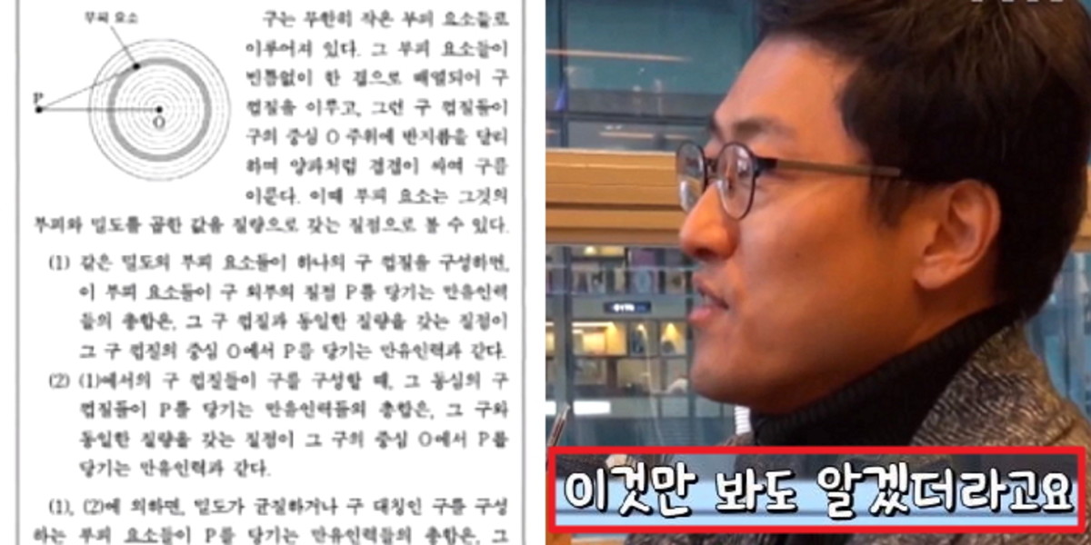 이어 "밑에 1~5번만 봤다. 그것만 봐도 정답을 알겠더라"라며 "그게 잘못됐다는 거다. 국어 문제가 아니라 물리 문제였다"라고 설명했다.