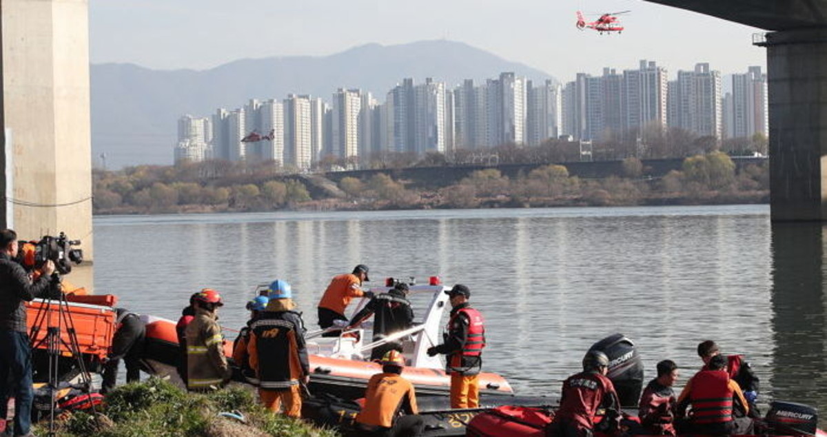 30일 서울 한강경찰대 관계자에 따르면 이날 오전 11시 20분께 강동대교 북단 인근 한강 위로 산림청 소속 헬기 1대가 추락했다.