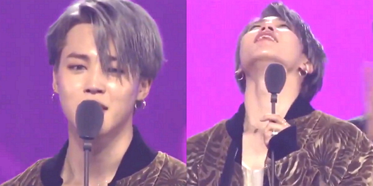 무대 위로 올라온 멤버 지민은 "진심으로 감사드립니다. 제가 이 상을 받으니까 지금 가장 감사드리고 싶은 사람은 방시혁 PD님과 우리 회사 식구, 매니저 형들, 스태프분들한테 감사하다고 전해드리고 싶다"고 말했다.