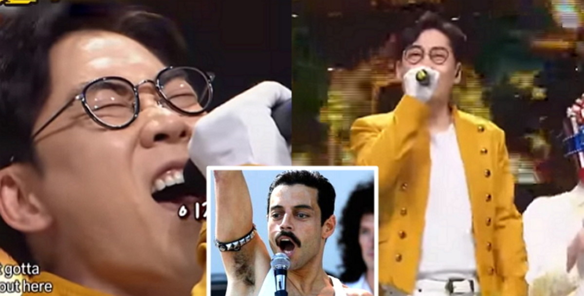 가면을 쓰고 등장한 그는 프레디 머큐리 특유의 감정 조절이 필요한 곡을 무리 없이 소화하는 모습이다.