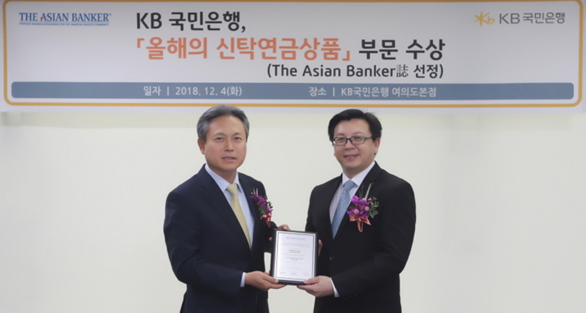 5일 KB국민은행은 지난 4일 글로벌 금융전문지인 '아시안뱅커(The Aaian Banker) 사'로부터 '올해의 신탁연금상품(Trust and Pension Product of the Year)'부문을 수상했다고 밝혔다.