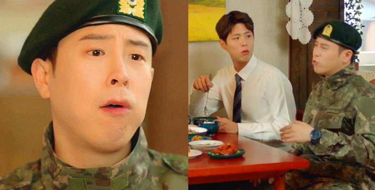 군복을 입고 아침 밥상에 깜짝 등장한 진명.