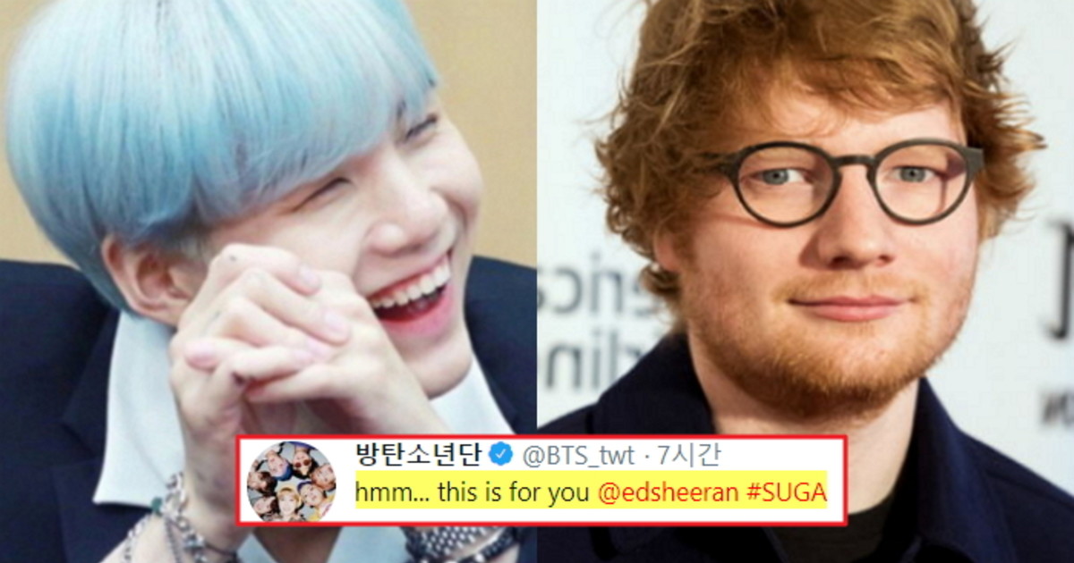 6일 슈가는 방탄소년단 공식 트위터 계정을 통해 "이건 에드 시런을 위한 것"이라는 글과 함께 사진을 게재했다.