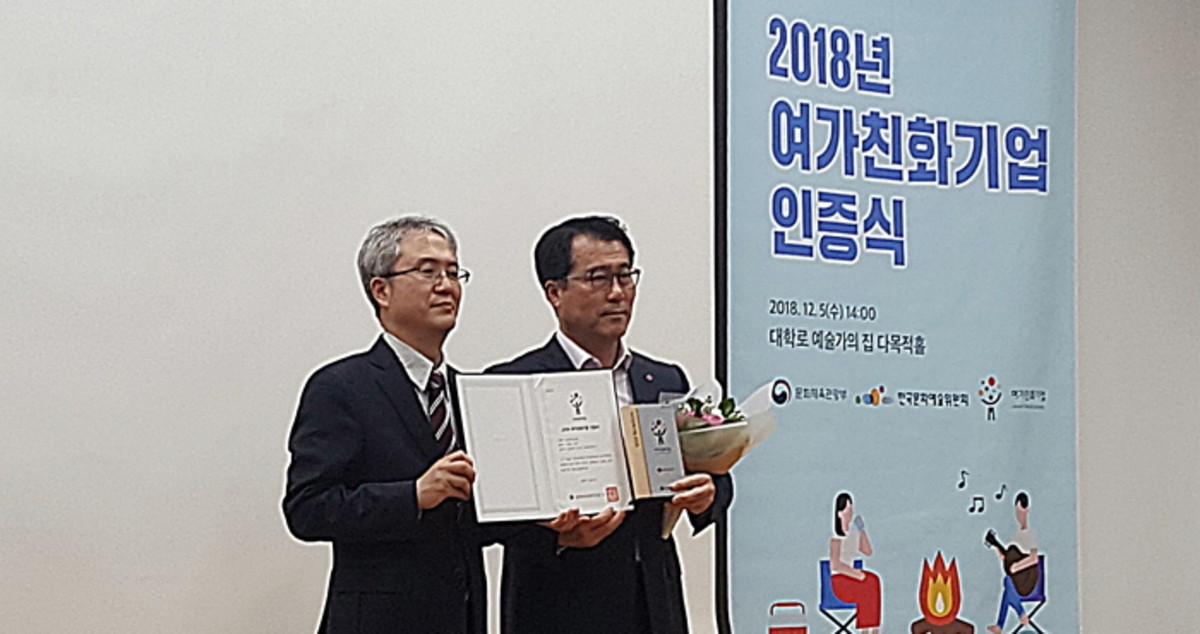 6일 롯데칠성음료는 전날인 5일 서울시 종로구에 위치한 예술가의 집에서 열린 여가친화기업 인증식에서 '2018 여가친화기업'으로 선정돼 인증패를 받았다고 밝혔다.