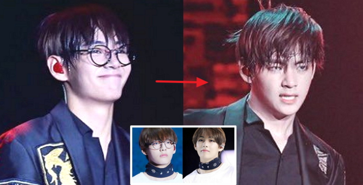 뷔는 무대에서 이 안경을 십분 활용해 '반전'미 넘치는 모습을 선보이기도 하는데, 이 반전되는 매력에 푹 빠진 팬들이 많다는 후문이다.