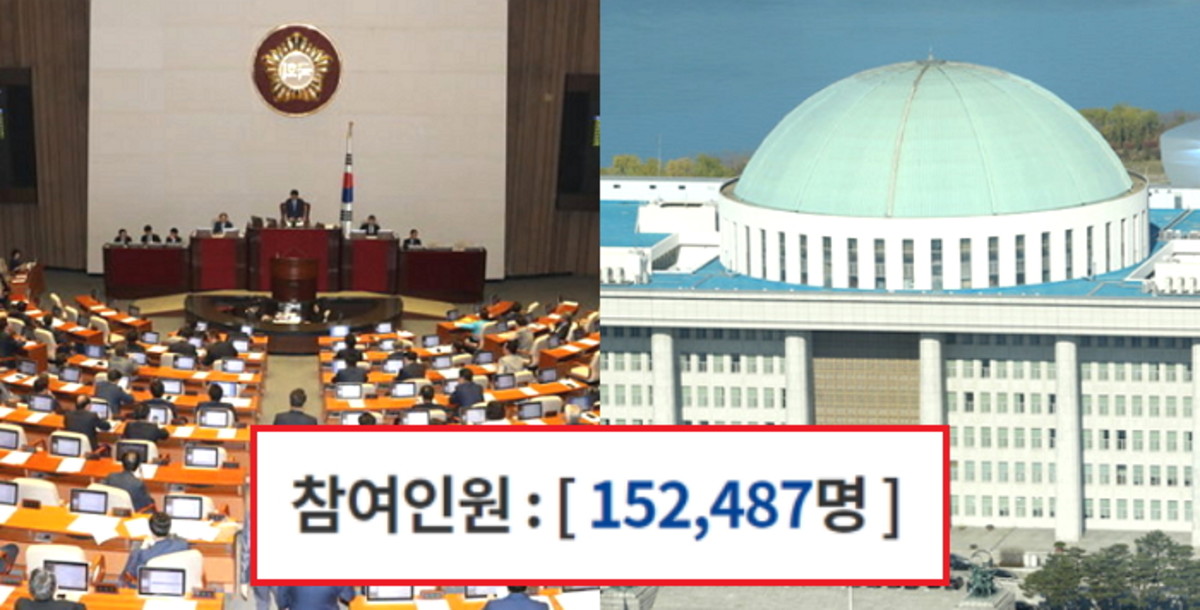 10일 오전 현재 청와대 국민청원 게시판에 올라온 '국회의원 내년 연봉 2000만 원 인상 추진…최저임금 인상률보다 높은 14%…셀프인상을 즉각 중단하십시오!!'라는 제목의 청원에는 15만 2,487명이 동의했다.