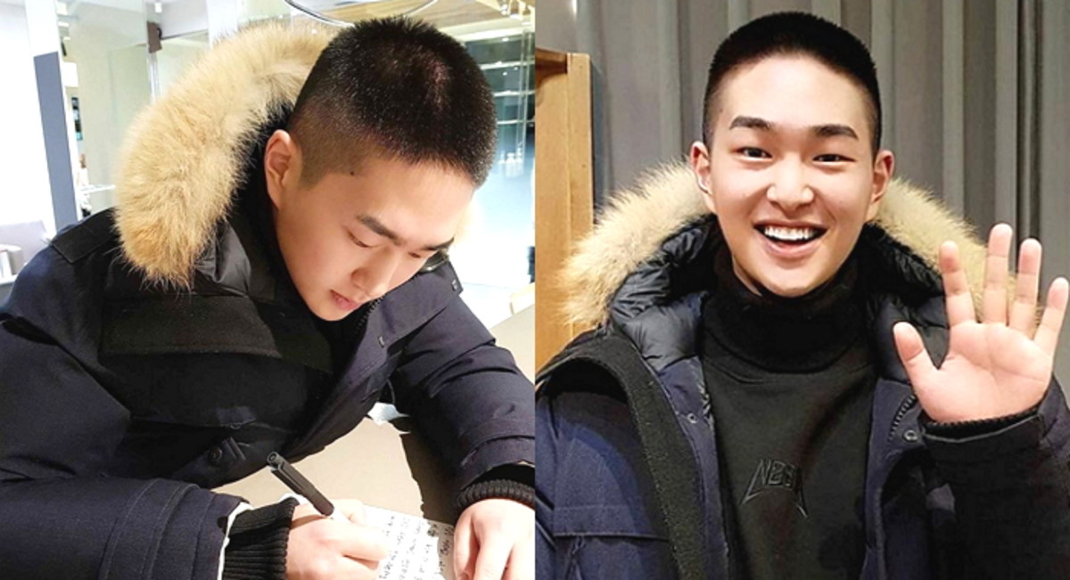 짧게 자른 머리를 하고 환하게 웃는 온유의 모습에서는 군 복무를 성실하게 임하겠다는 의지가 엿보인다.