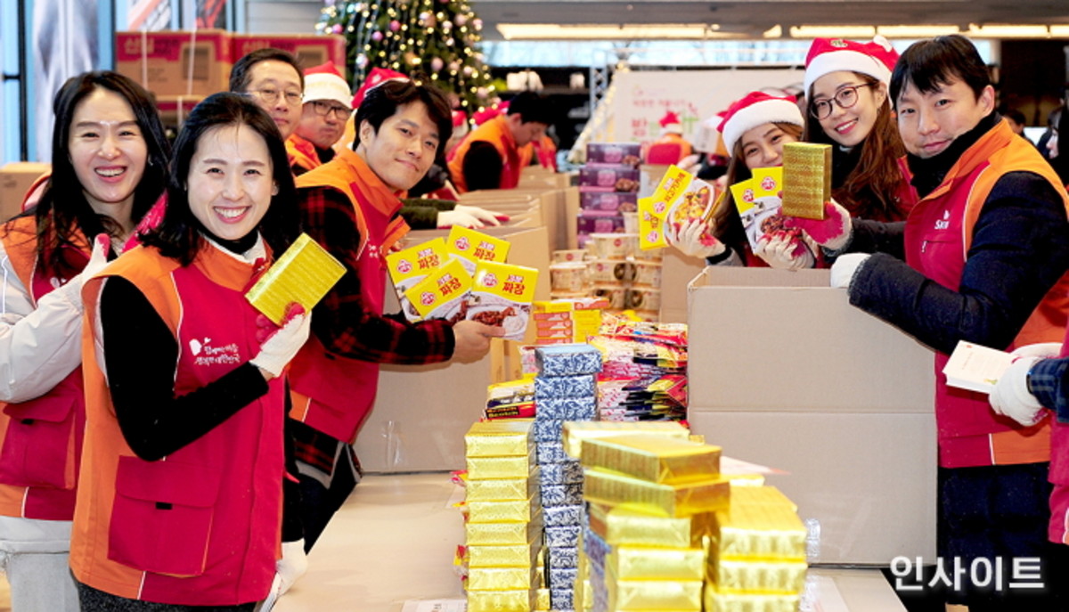 10일 SK건설에 따르면 밀알복지재단과 지난 7일 서울 종로구 '지 플랜트(G.plant)' 사옥에서 전기방석, 문풍지, 보온주머니 등 12개 방한물품과 후원아동에게 쓴 크리스마스 카드를 키트 상자에 담았다.