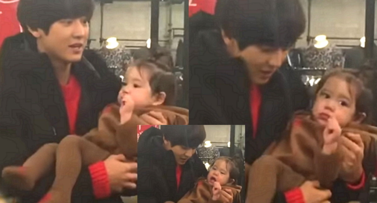 SNS 등에 누리꾼들이 올린 영상에서 건후는 엑소 멤버 찬열의 품에 안겨 세상 행복한 미소를 짓고 있다.