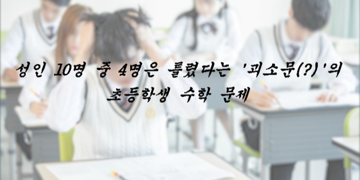 성인 10명 중 4명은 틀렸다는 괴담(?)을 몰고 다니는 초등학교 5학년 수준의 수학 문제가 눈길을 끈다.