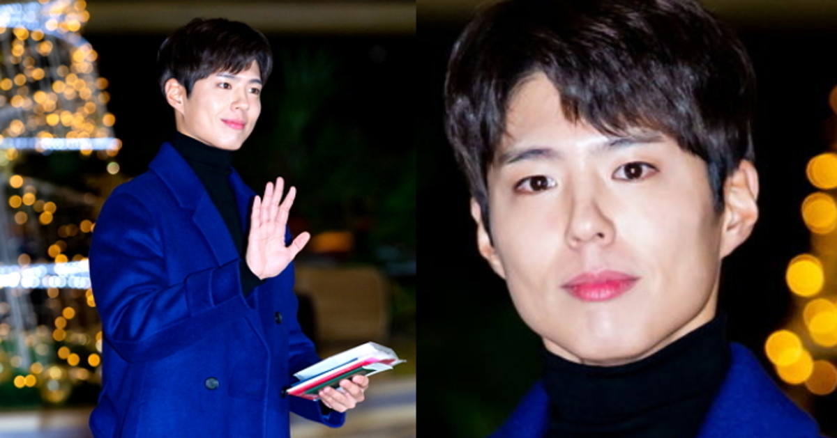 이날 박보검은 파란색 롱코트에 검은색 목폴라를 찰떡같이 소화했다. 훤칠한 키 때문인지 롱코트를 입은 그의 모습은 더욱 빛이 났다.