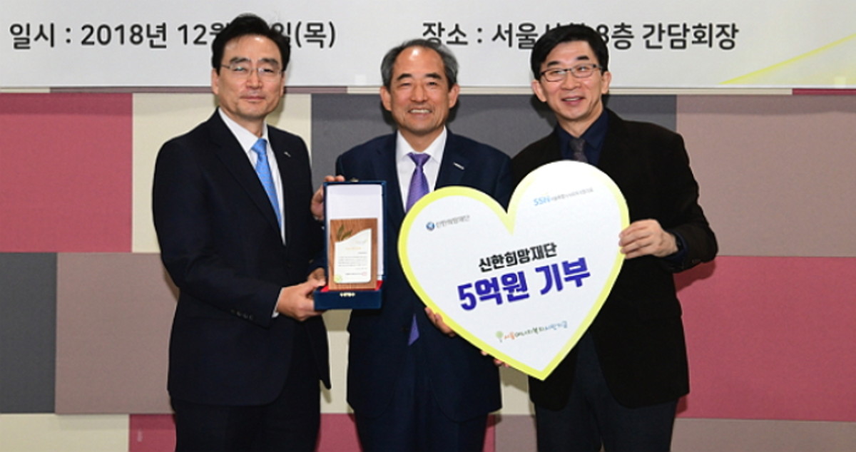 14일 신한희망재단은 전날인 13일 서울시청에서 서울시에 '친환경 콘덴싱보일러 설치 지원사업'을 위한 기부금 5억원을 전달했다.